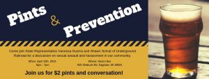 State Representative Vanessa Guerra and URR Prevention Coordinator, Shawn Schutt, invite you to sit down in an informal setting to discuss the issues of sexual violence and harassment in our state and community. Join us for drinks and good conversation! SPECIALS: $2 Domestic Pints